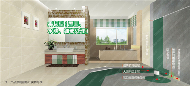 6. 若需在防水涂層上粘貼瓷磚,建議使用瓷磚膠或低標號水泥砂漿粘貼。